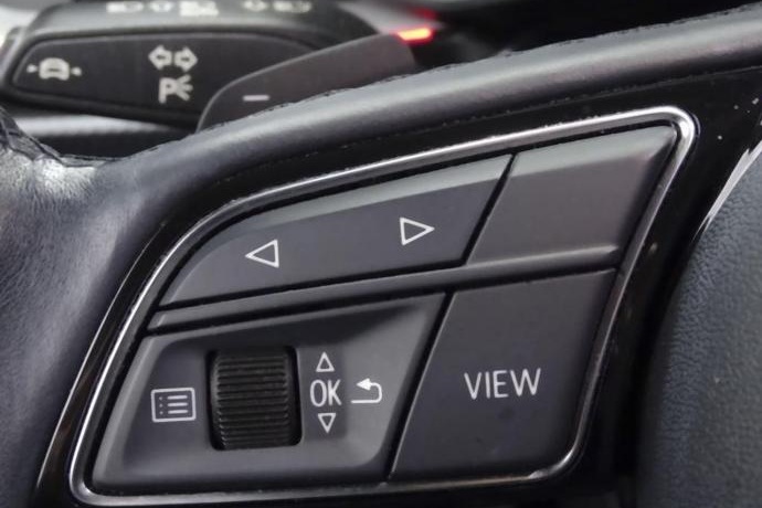- Volante de cuero contorno deportivo, 3 radios, achatado en parte inferior, con multifunción plus y levas de cambio