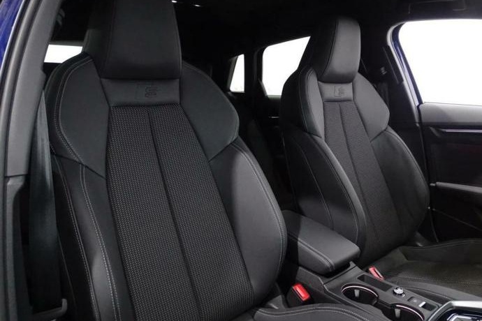 - Asientos de tela (material principal) y de cuero sintético (material secundario)