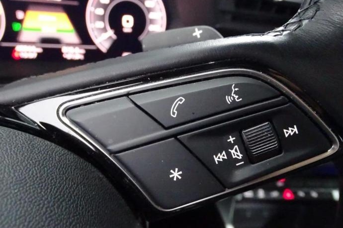 - Volante deportivo de tres radios multifuncional achatado en la parte inferior con levas para el cambio S tronic