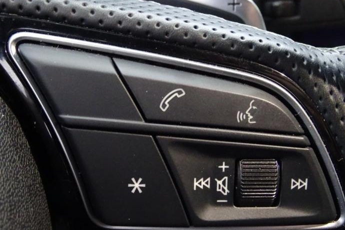 - Volante de cuero contorno deportivo, 3 radios, achatado en parte inferior, con multifunción plus y levas de cambio