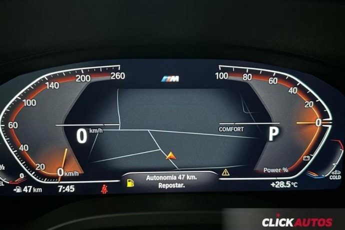 - Asientos deportivos para conductor y acompañante Climatizador Faros de LED Asistente para luz de carretera Active Guard Parking Assistant Llamada de Emergencia Inteligente TeleServices Servicios ConnectedDrive Connected Package Professional BMW Live Cockpit Paquete de retrovisores interior y exteriores Paquete M Sport · Molduras interiores M en aluminio Rhombicle oscuro con perfil cromo perlado · Volante M Sport de cuero · Suspensión M Sport · Molduras exteriores M en negro brillo Shadow Line · Carriles longitudinales M para la baca en negro brillo Shadow Line · Techo M en color antracita · Paquete aerodinámico M · Cambio automático con levas de cambio Paquete Travel · Persiana solar en las ventanillas laterales traseras de accionamiento mecánico · Techo de cristal panorámico · Ajuste del respaldo de los asientos traseros · Cristales tintados para protección solar · Paquete de compartimentos