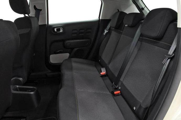 - Asientos traseros de tres plazas de tipo banco de orientación delantera con banqueta fija y respaldo abatible asimétrico