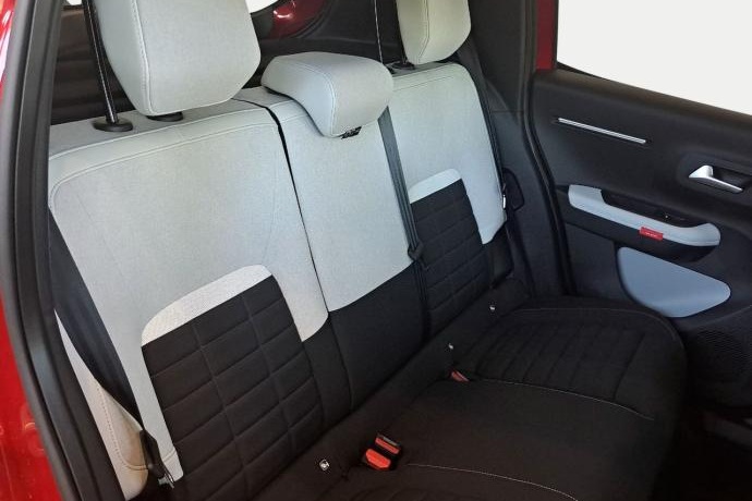 - Asientos traseros de tres plazas de tipo banco de orientación delantera con banqueta fija y respaldo abatible asimétrico