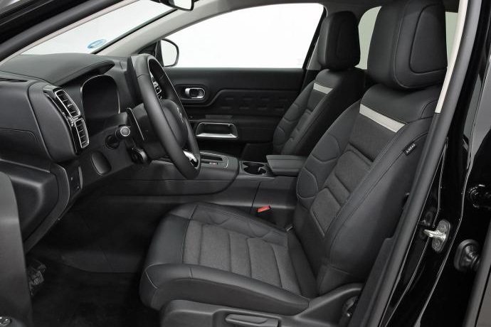 - Asientos de tela (material principal) y de cuero sintético (material secundario)