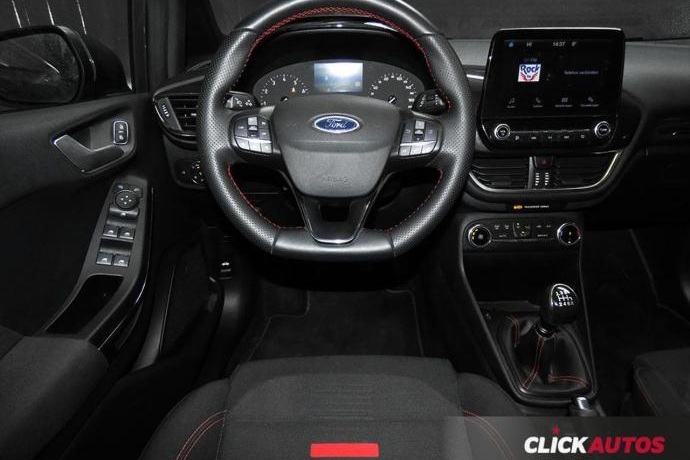 - 3 cm (8") Radio digital Conexión USB Spoiler trasero Volante deportivo ST-Line en cuero y costuras en rojo Tapicería de tela ST-Line Climatizador Ordenador de viaje Control de velocidad con limitador Volante con ajuste vertical