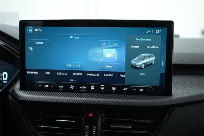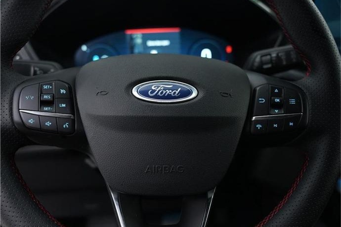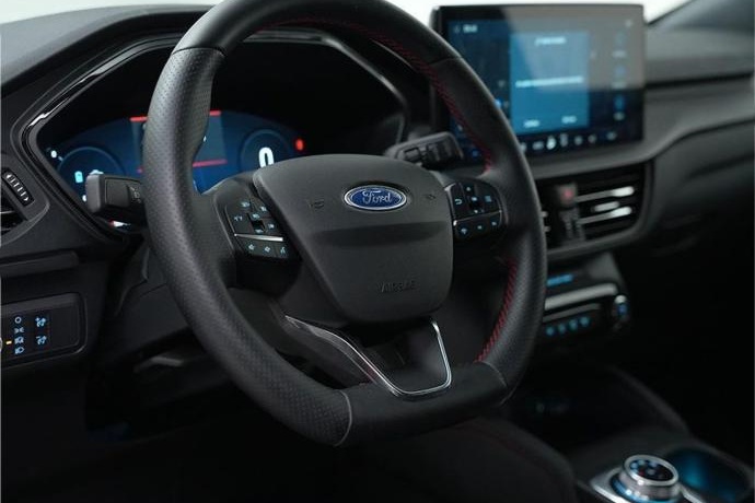- control de estabilidad Asistente de precolisión con frenado post impacto Control crucero con limitador de velocidad Detector de fatiga Mantenimiento de carril con advertencia de cambio de carril Reconocimiento de señales de velocidad Spoiler pequeño Tubo de escape doble acabado ST-Line Apertura puertas delanteras y arranque sin llave Barras de techo negras