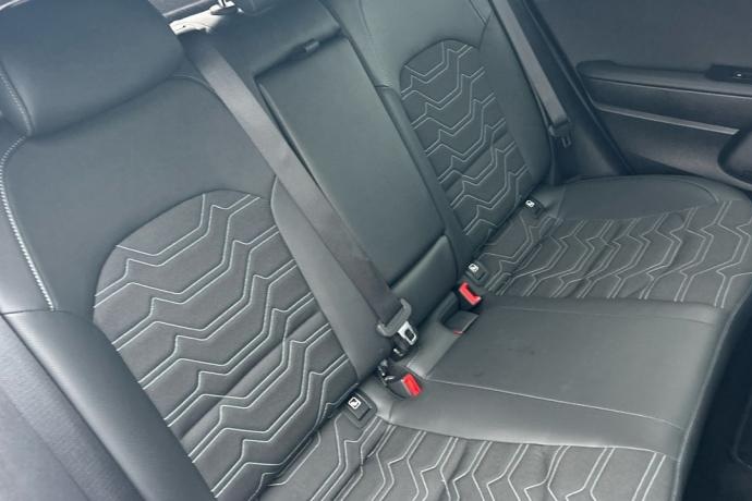 - Asientos de tela (material principal) y de cuero sintético (material secundario)