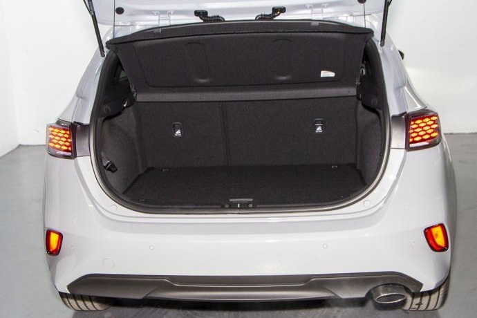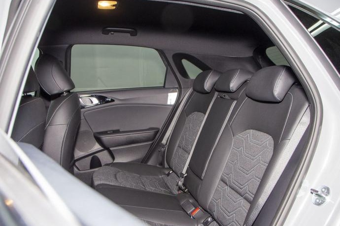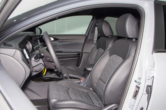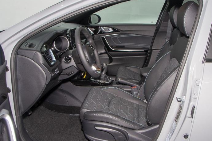 - Asientos de tela (material principal) y de cuero sintético (material secundario)