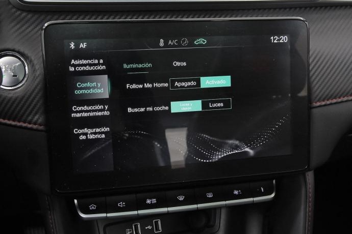 - Acabados de lujo: pomo de la palanca de cambios en símil aluminio, consola central en símil fibra de carbono, puertas en símil aluminio y tablero en símil aluminio