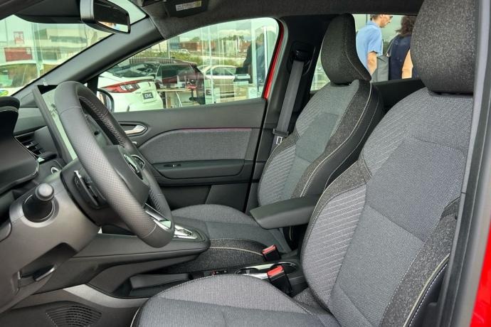 - Asientos de tela (material principal) y de cuero sintético (material secundario)