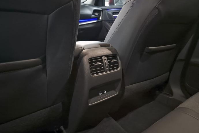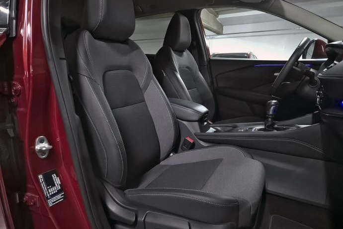 - Asientos de tela (material principal) y de cuero sintético (material secundario) comercializado como sostenible/vegano