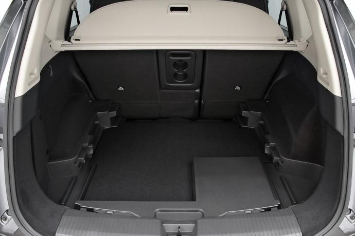 - Capacidad del compartimento de carga: 575 litros (hasta las ventanas con asientos montados) y 1.396 litros (hasta el techo con asientos plegados) ( medición VDA ) 0 l de almacenamiento delantero y 0,0 cu ft de almacenamiento delantero