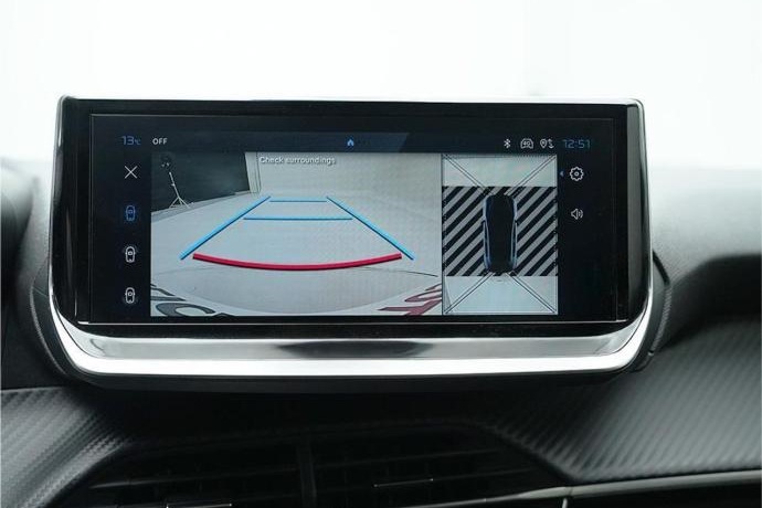 - Se muestra una vista aérea panorámica de 360º del entorno del vehículo Asistente pasivo de ángulo muerto y luz de bienvenida en retrovisores exteriores Peugeot I-connect ® Advanced: Navegación 3D conectada con pantalla de 25