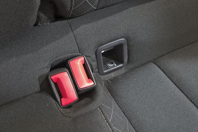 - Asientos traseros de tres plazas de tipo banco de orientación delantera con banqueta fija y respaldo abatible asimétrico