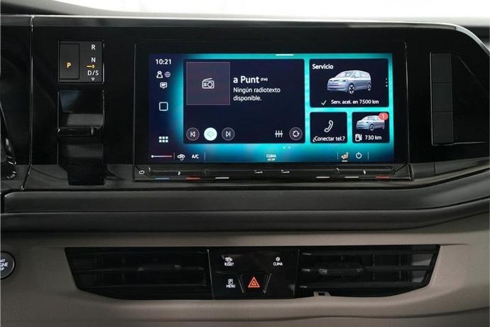 - 7 PLAZAS 2 Puertas corredizas Climatizador manual Faros LED con luz de marcha diurna LED Digital Cockpit Radio con pantalla táctil color de 10” Volante multifuncional de cuero con levas de cambio Asistente de frenada de emergencia Front Assist Asistente de aviso de salida de carril lane Assist Llamada de emergencia e-call Park Pilot delantero y trasero Limitador de velocidad con regulación anticipativa